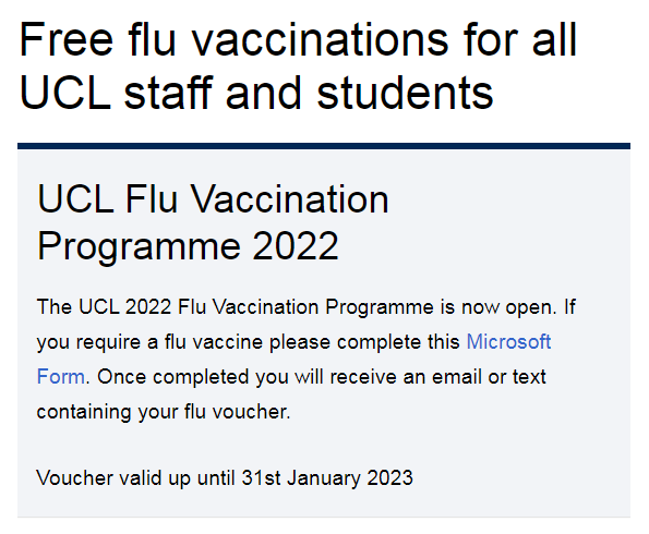 只有为数不多的院校为所有学生提供免费流感疫苗接种服务,其中就包括 伦敦大学学院 UCL。