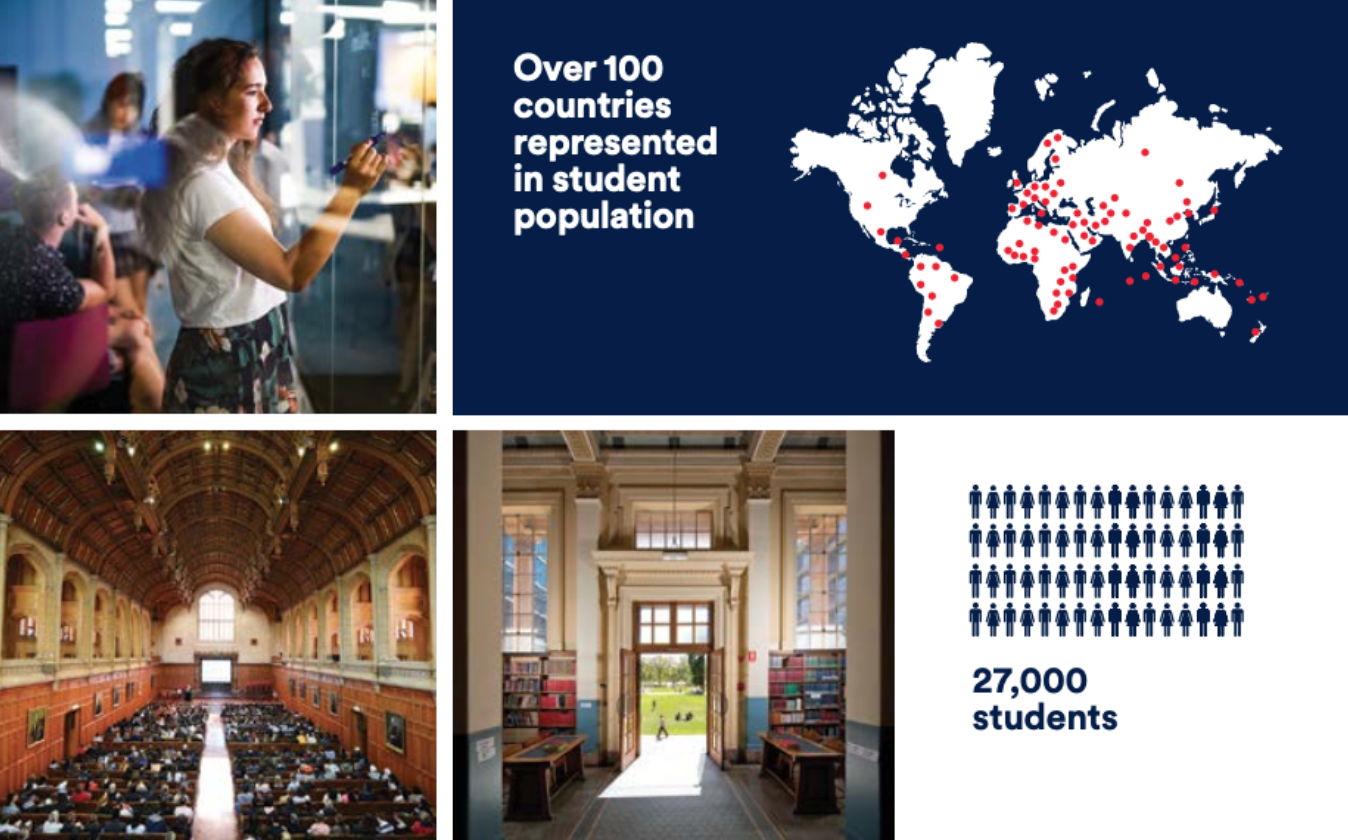 截至目前,阿德莱德大学共有来自全球100多个国家和地区的共计 27000名 学生就读。多个校区交相辉映,共同为每一位在读学生提供高质量的学习体验。