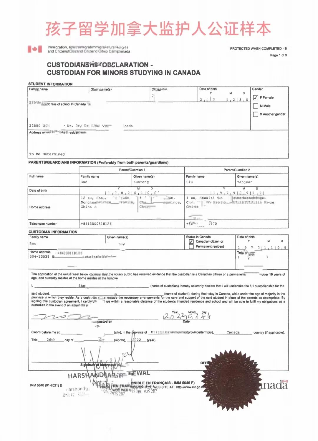 Q3:孩子未成年,在加拿大需要提供监护人公证,是一定要的吗?