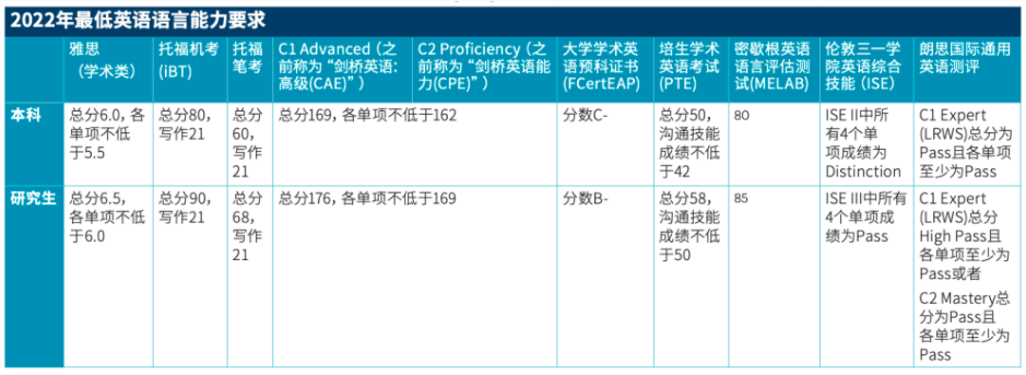以下表格列出了进入大学的最低分数要求,但有些本科和研究生课程需要更高的入学条件。