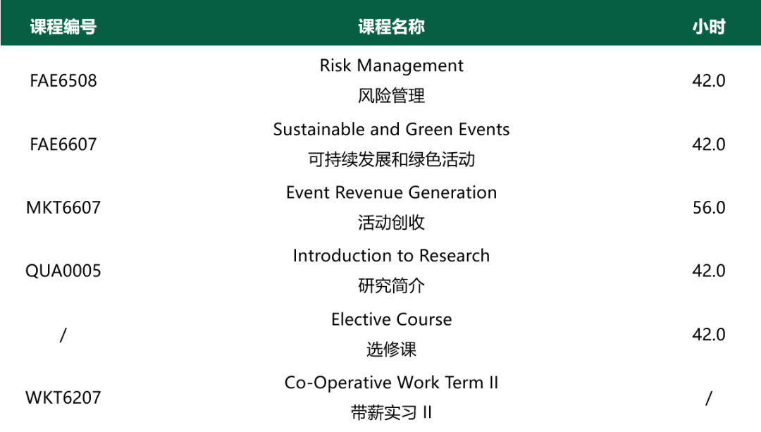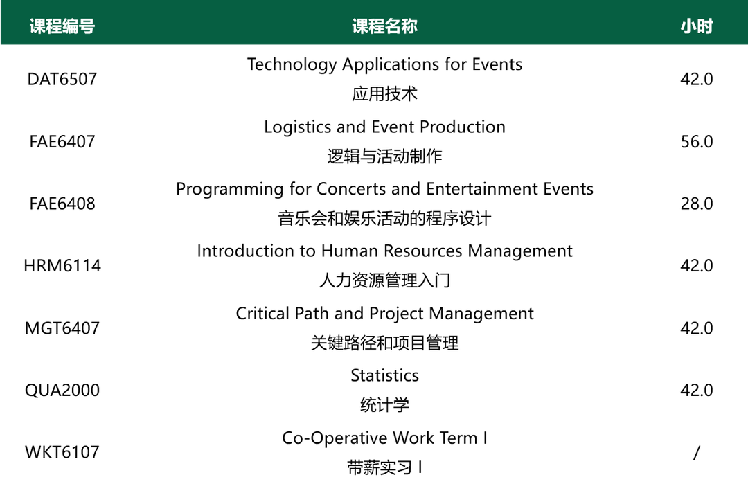 学生将建立一套对活动行业至关重要的多学科能力,专注于战略规划、营销和项目管理专业知识。学生在中层管理水平上发展团队合作、领导、沟通、批判性思维和解决问题能力。这些商业基础支持各种活动的具体应用,如物流、运营和风险管理、安全和安保、创收、营销、公共关系、项目管理、经济、金融、创业、人员管理、跨文化关系、可持续性和人群管理等。该专业带有8个月带薪实习,区域、国家和国际合作为学生提供了大量实践机会。在课程最后阶段,学生将挑战与行业客户一起设计、计划和执行一个现场活动,从而熟练应用所学的技能。