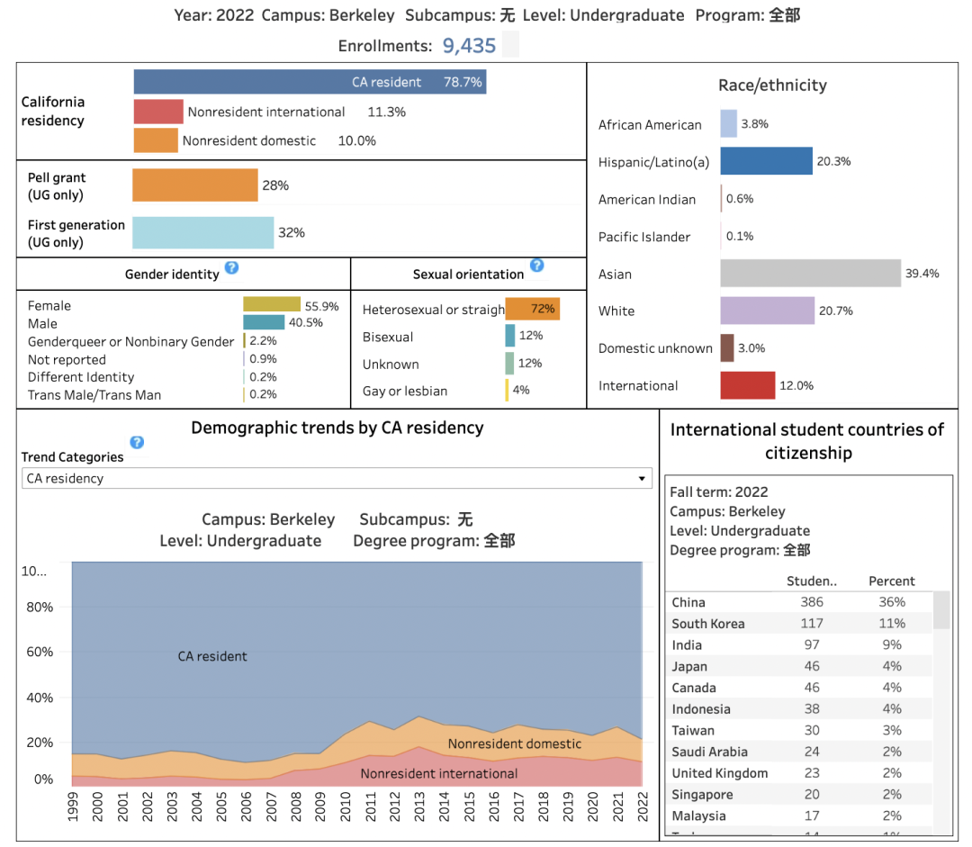 2022 Fall,UCB共有9435名本科新生入学,国际生占12%,中国学生386人。