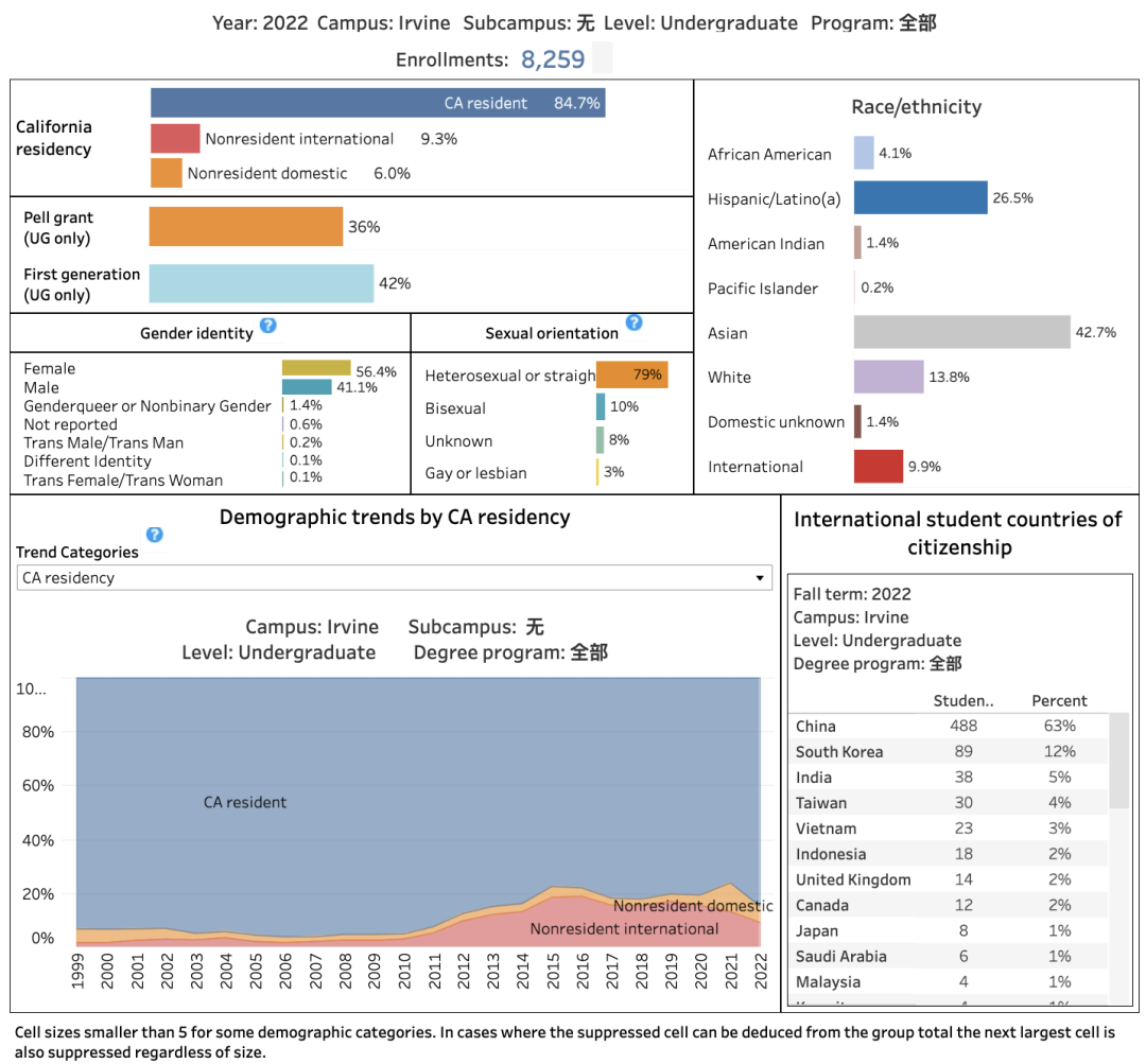 UCI对中国学生也是比较友好的,2022 Fall 488名中国新生入读,占国际生的63%。