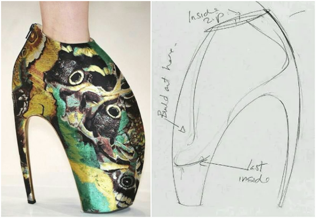 最早震惊所有人的“离谱”鞋靴设计,大概要数麦昆设计的 犰狳鞋。