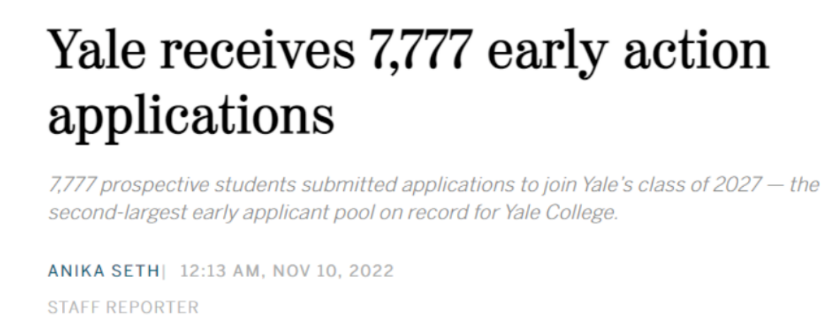 早申结束不到两周时间,耶鲁大学就率先公布了今年的早申情况!