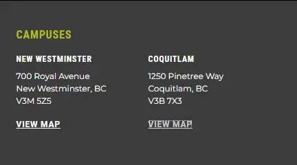 新西敏校区所在的城市曾是BC省曾为殖民地期间的首府,是温哥华著名的历史名城。校区毗邻空中巴士世博线车站仅几步之遥。