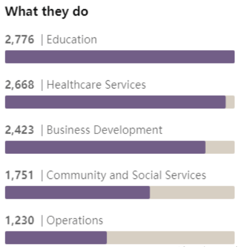 即使同学们不读研究生,不考虑做心理咨询师, 心理学专业也能在很多的行业发光发热 ,比如从事文员的工作,相关领域的研究,人力资源,儿童福利工作者等。同时根据数据显示,读心理学的同学,大部分都选择了从事教育,健康相关的工作。以下的图表显示的是韦仕敦大学心理学毕业生的从业的行业, 可以看到前五的行业有教育,健康科学,商业拓展,社区和社会,以及运营。