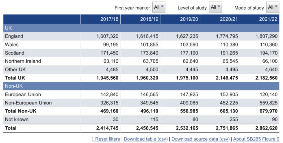 数据显示,英国高等教育机构在 2021/22 学年接待了679,970名国际学生,比预期提前十年实现了 600,000 名的目标。