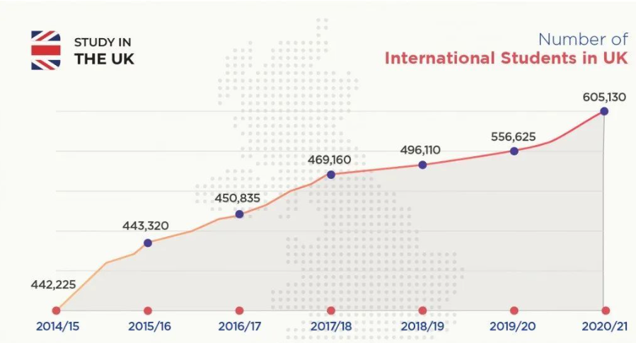 英国政府原本的目标是到 2030 年将英国大学的国际学生人数增加到 600,000 人,但最新的数据指出,英国已经提前十年实现了这一目标,其中超过三分之一来自中国。