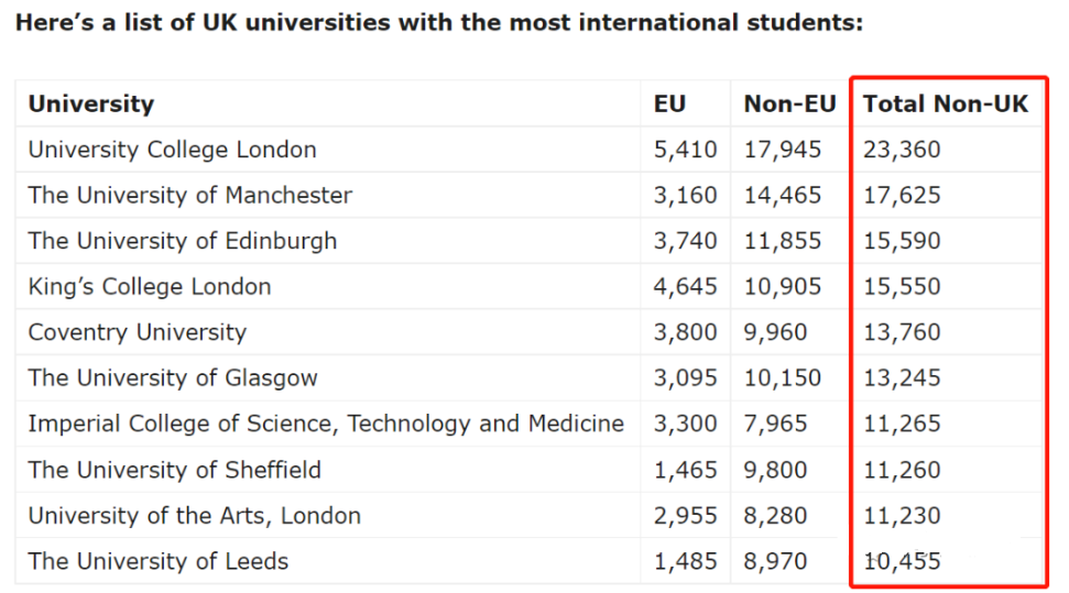 - 曼彻斯特大学(17,625 人)、爱丁堡大学(15,590 人)和伦敦国王学院(15,550 人)紧随其后。