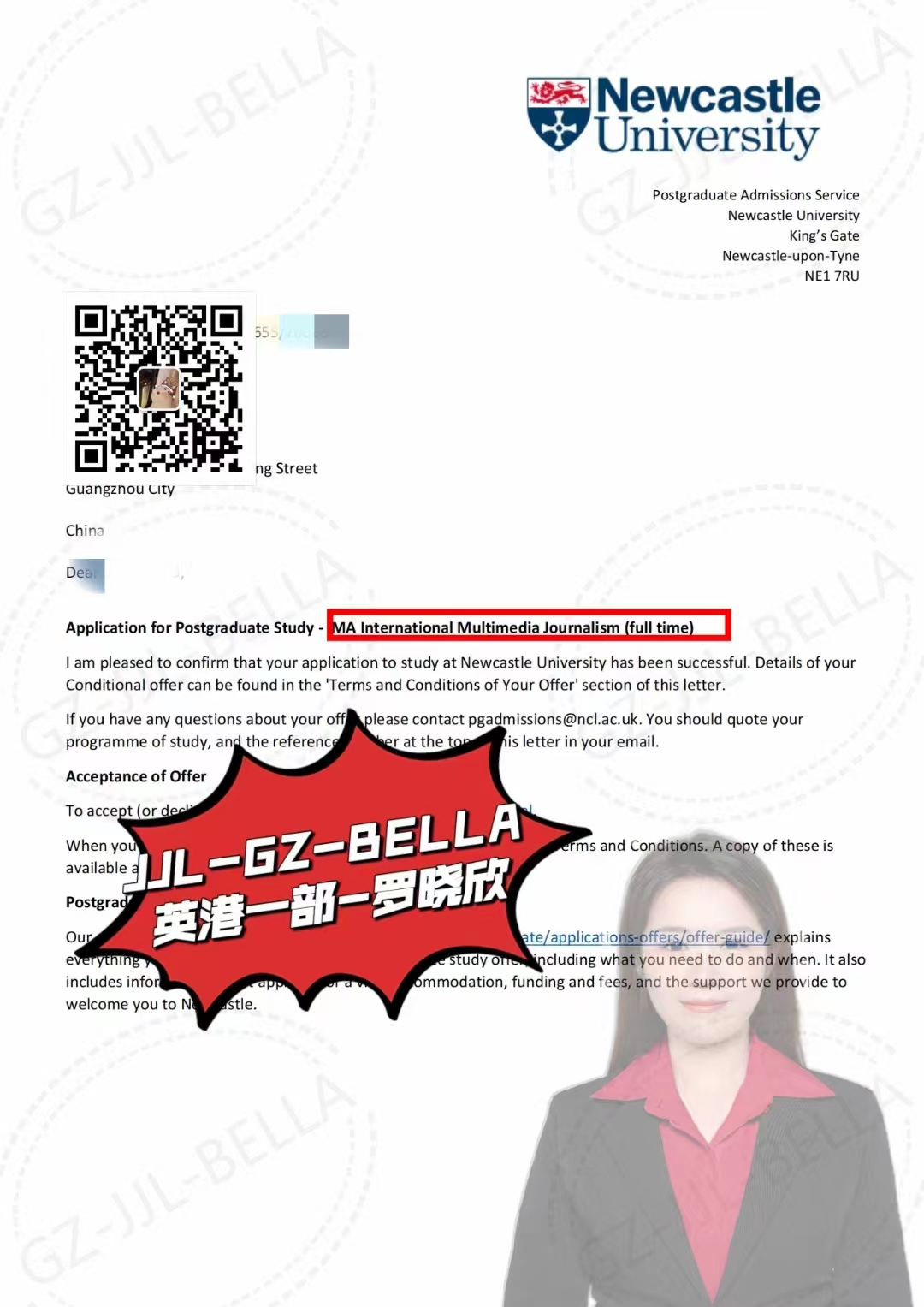 管理转传媒 跨专业申请录取~该学生还拿到了约克大学以及宁波诺丁汉的有条件录取~