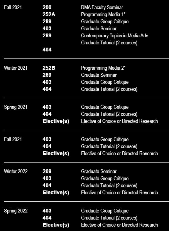 UCLA媒体艺术课程安排: