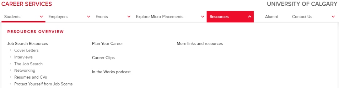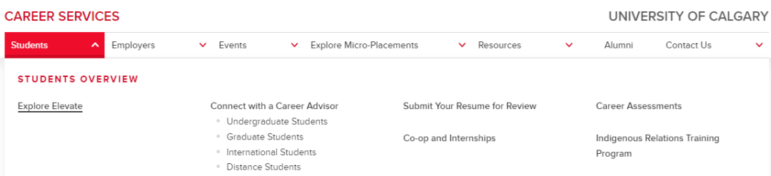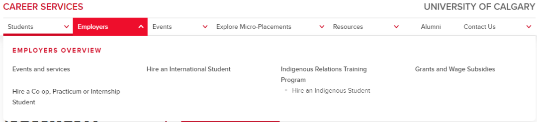 在卡尔加里大学的官网上搜索Career Services,你会发现不管你是卡尔加里大学的学生,还是企业的雇主,你都能通过这个平台找到你想要的。如果你是学生,你将获得以下服务和支持: