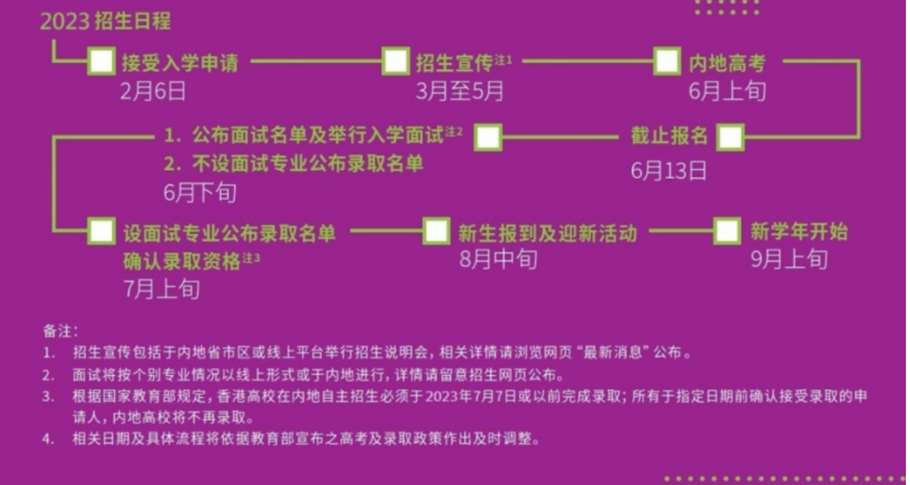 2) 若因香港或内地恶劣天气或其它不可抗力原因导致校方未能如期进行入学面试,大学就考生的录取安排有最终决定权。