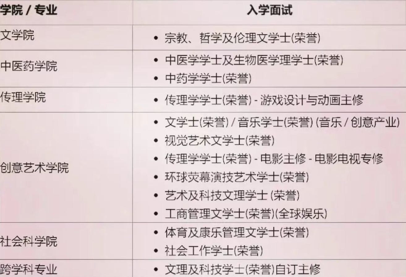 ■面试资格: 申请人须于国家统一高考成绩达到最低入学要求,才有机会获邀参加面试。由于面试名额有限,各专业竞争激烈,考获一本线的合资格申请者人数众多,面试分数线会因不同专业的情况往上调,只有少数成绩卓越的考生可获面试安排。故此,申请人的高考成绩及所报读专业的报名情况两者同时决定考生是否有面试机会。