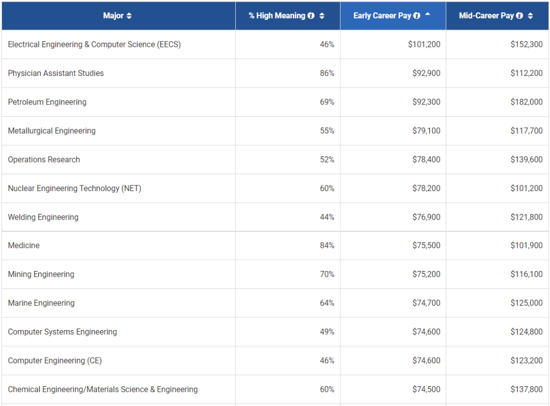 PayScale每年都会公布一份美国大学薪资水平报告,通过调查近三千所大学或学院毕业生薪资水平,直观地为大家选专业或择校提供一个重要参考。