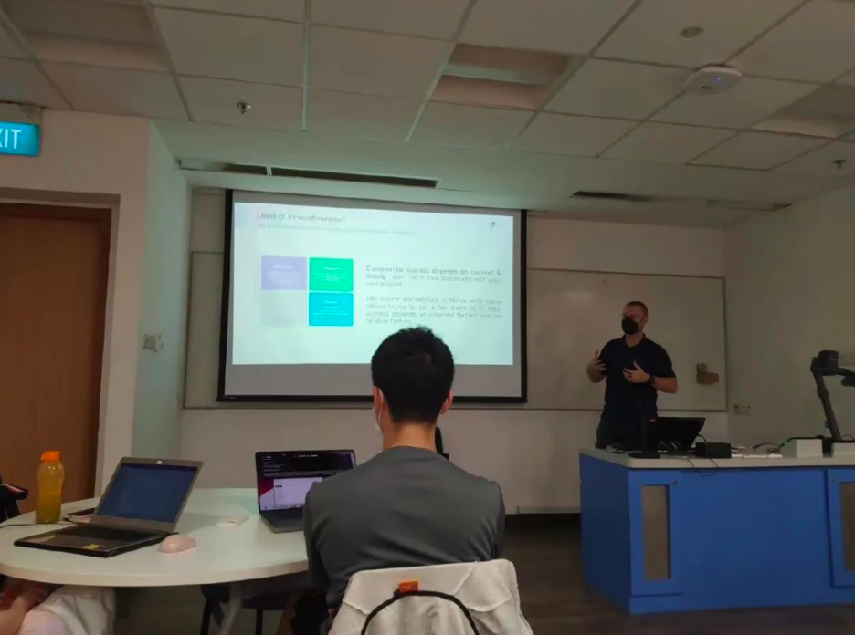 今年的授课老师Bert Grobben客座副教授非常亲切,他不喜欢我们叫他教授,鼓励我们直呼其名。教授在联合利华等大型企业有丰富的行业经验,他还是新加坡孵化器Budding Innovation的CEO,始终走在新兴技术前沿,他的眼界和人脉使同学们受益良多。最后一节课上,他还邀请了合伙人一起为我们的技术方案做商业点评,把课堂化身为真实的业内舞台。