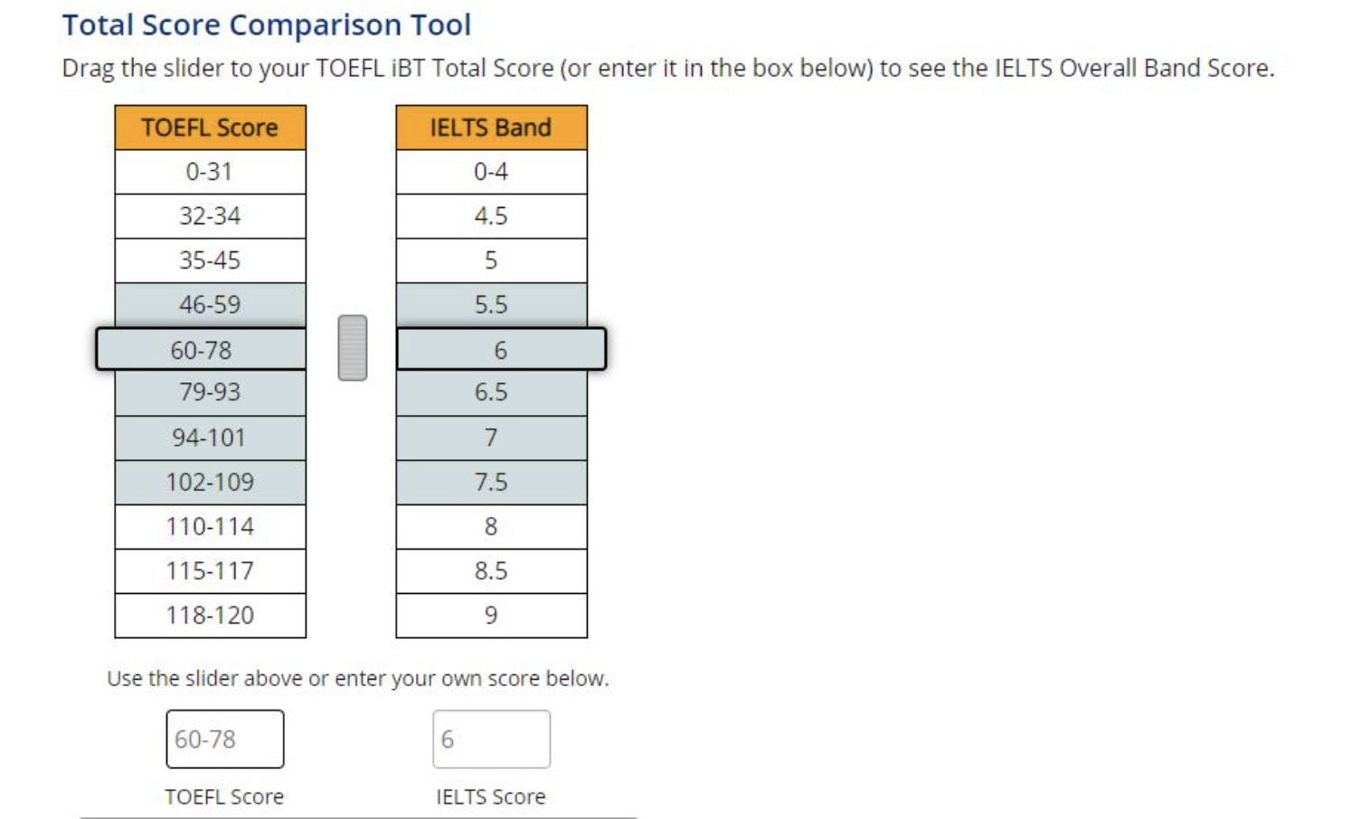 之前ETS在官网上发布了分数转换表,供纠结考托福or雅思的同学们参照。只要在左侧输入托福分数即可在右侧的出相对应的雅思成绩。