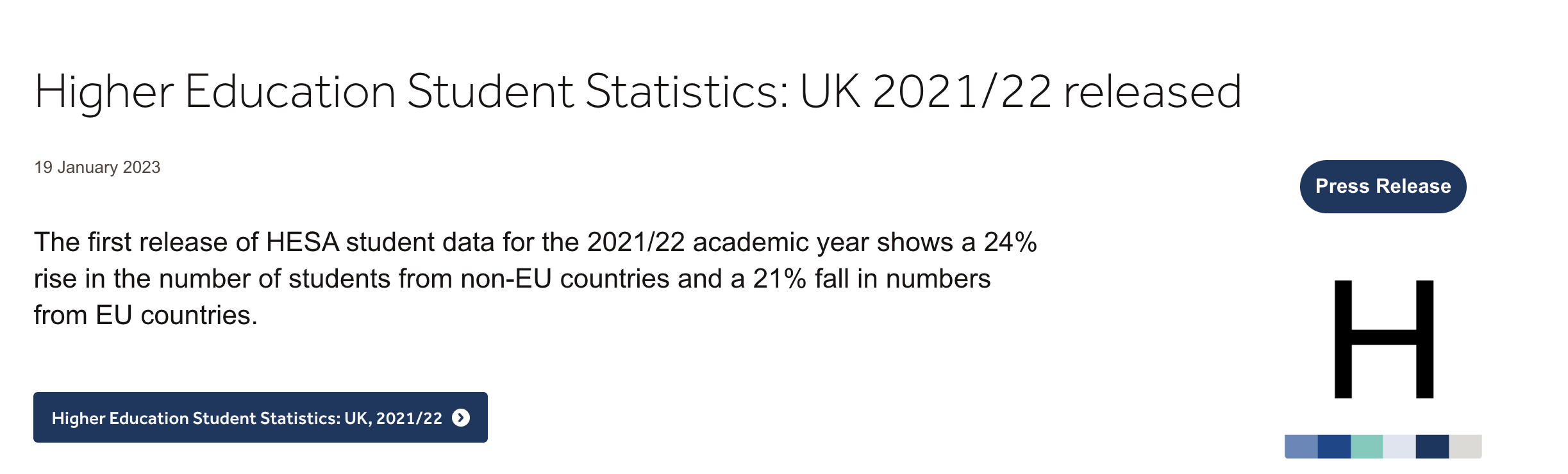 跟据HESA官方给出的数据, 在21/22学年,非欧盟学生总人数为559,825人。