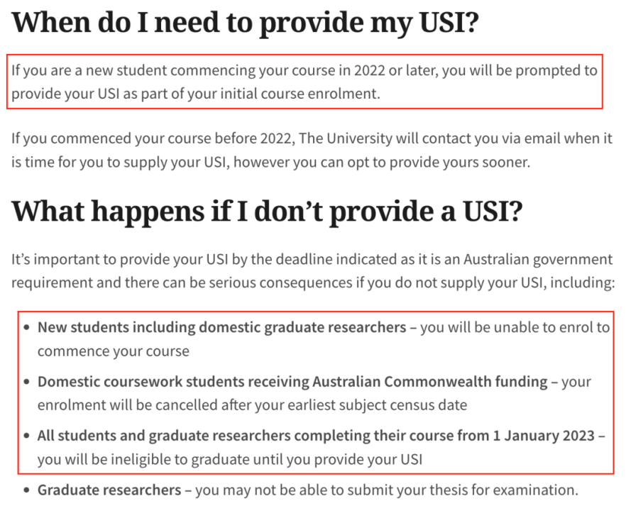 · 从2022年开始的新生都需要提供USI来完成课程的enrollment。