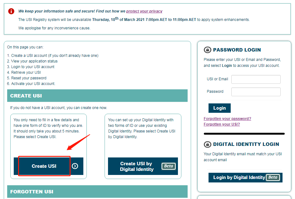 简单浏览一下后继续点击“Get your USI now”就可以正式进入申请页面啦!