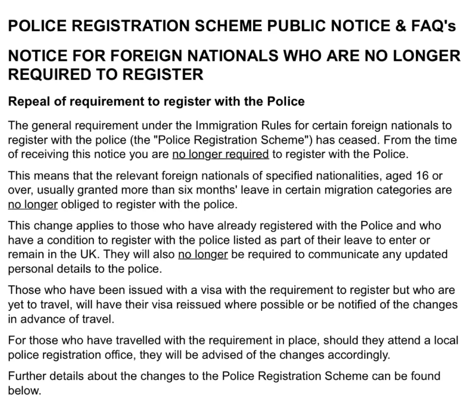 英国取消警察局注册了,也就是说大家不用去预约排队交钱34英镑注册地址了,因为Police registration is no longer required。