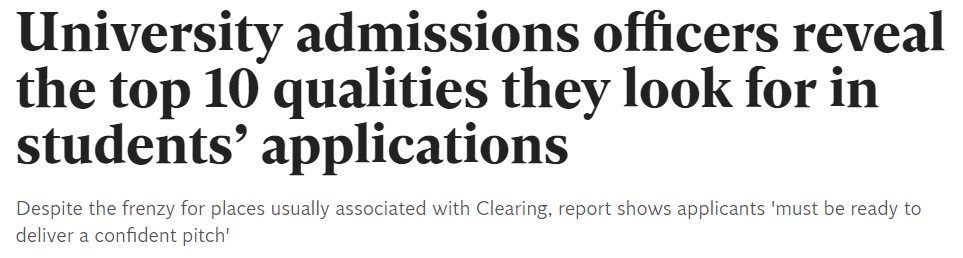 ▲ 英国独立报称10个招生官最看重的品质,除了文章提到的3个外,还有“对学习的积极态度,独立思考工作的能力,数学能力,坚持完成任务的能力,表达技巧,团队合作能力,跨文化意识”
