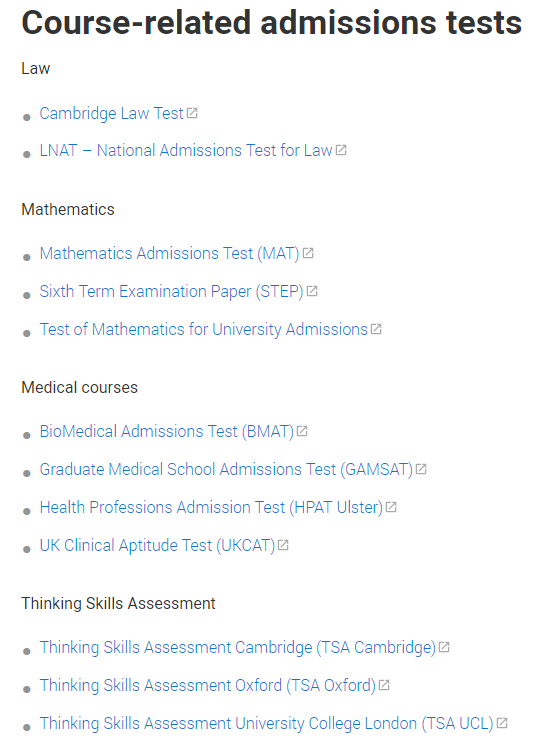 另外英国部分大学的部分专业,如医学和法律,还会有专门的入学考试。