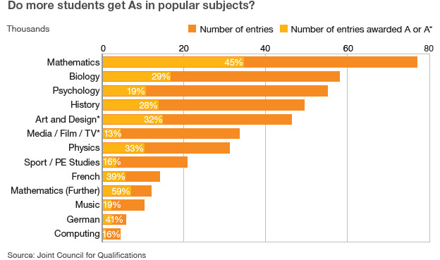 ▲ 英国A level阶段选择人数较多的科目