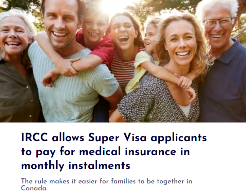加拿大移民、难民和公民部 (IRCC) 宣布改变超级签证申请人支付医疗保险的方式。IRCC 允许超级签证申请人以 每月分期付款 的方式支付医疗保险,让新移民和家人更容易在加拿大团聚 。