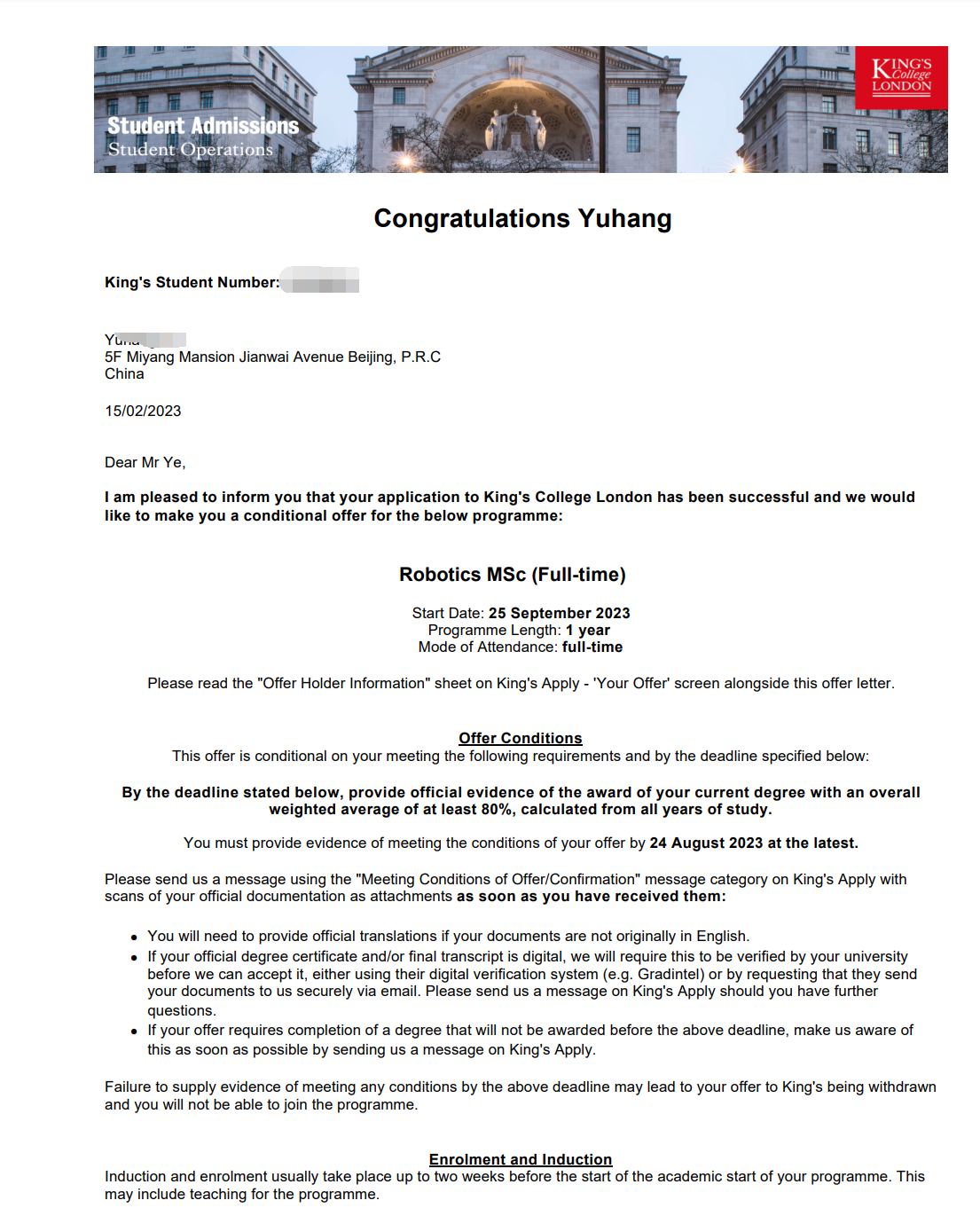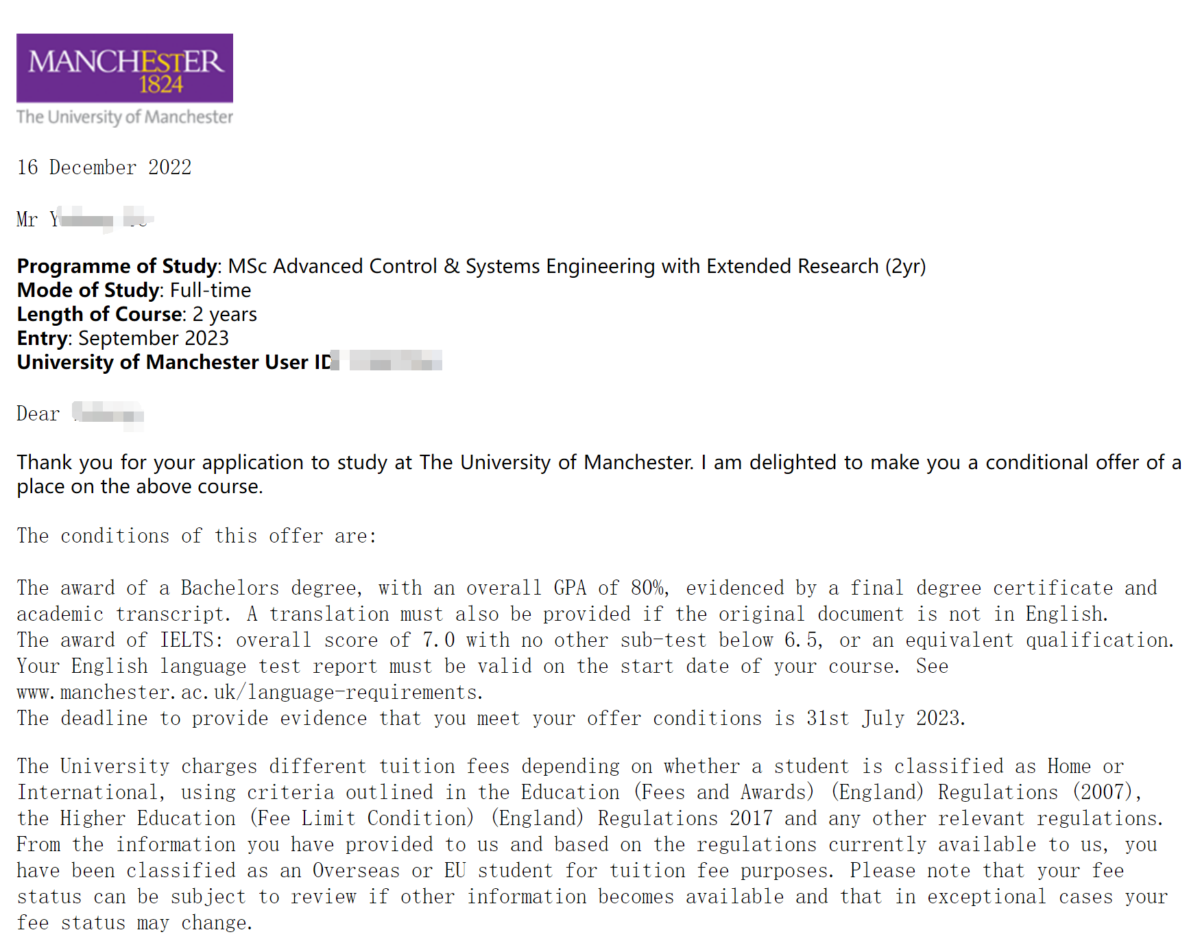 专业:MSc Advanced Control & Systems Engineering with Extended Research高级控制与系统工程与扩展研究硕士