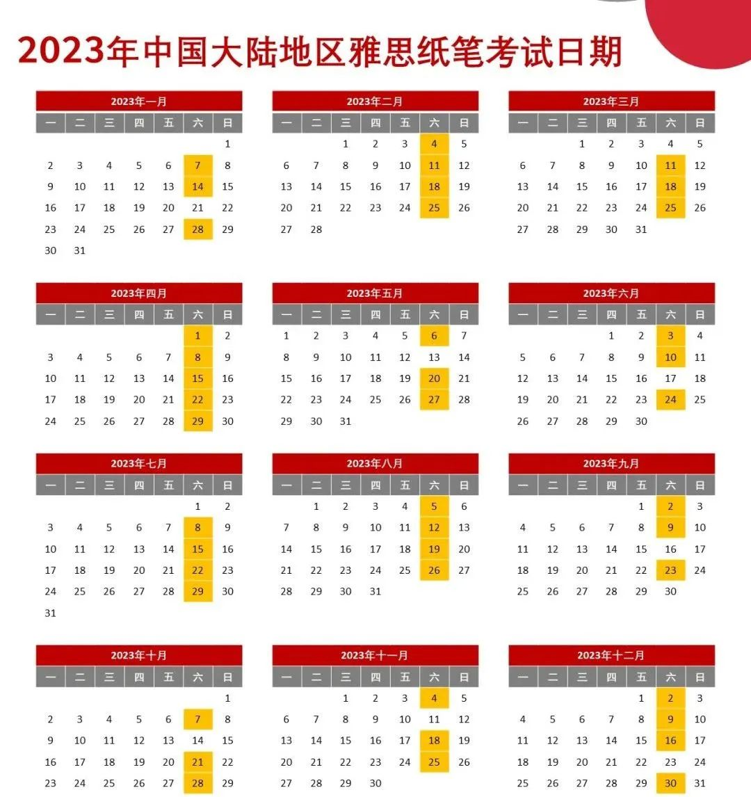 今天我们给大家整理好了2023全年留学考试日历,有留学意愿的同学们可以提前做好规划~