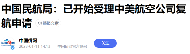 另外据中国民航局方面此前透露,1月8日起已开始受理中美航空公司恢复运营中美航线的申请。