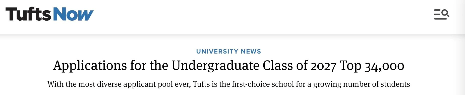 根据塔夫茨大学官网数据显示,该校今年共收到超过3.4万份新生申请。
