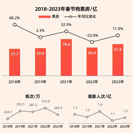 据灯塔数据显示,2023春节档电影排片场次已超2018同期水平,观影人次与2019持平。