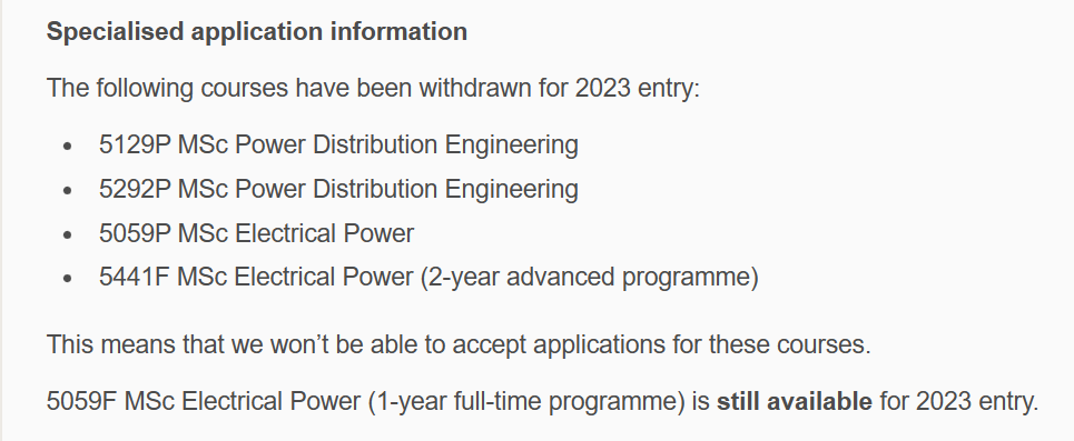 纽卡斯尔大学2023学年不再提供MSc Electrical Power (2-year programme),转为提供 MSc Electrical Power (1 year programme)
