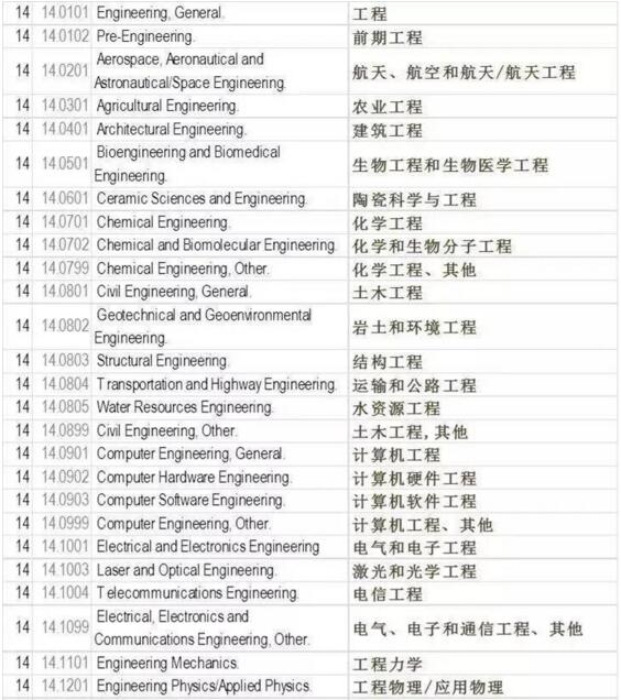 通常STEM专业包括工程类、生物科学、数学、物理科学及相关领域专业。最新公布的这份专业名单涵盖了工程类、数学、电脑科学、自然科学(包括物理学、生物学、农业科学)等领域的相关专业。2016年5月10日,美国国土安全部公布了最新STEM专业列表,大家可以通过此表查询确认,如果你的专业出现在了下面的列表中,那么恭喜你,你在今后便可享受STEM OPT延期的最新福利啦!另外,此列表对于“相关领域”进行了说明:相关领域是指与以上四大类领域相关的研究、创新或者新科技研发。列表中为各专业按领域划分制定了相应编号,STEM专业四大领域的CIP Code分别是:工程类 (CIP code 14),生物科学类 (CIP code 26),数学与统计学类(CIP code 27),物理科学类 (CIP code 40)。一旦有新的STEM专业出现,会被自动添加到此列表中。