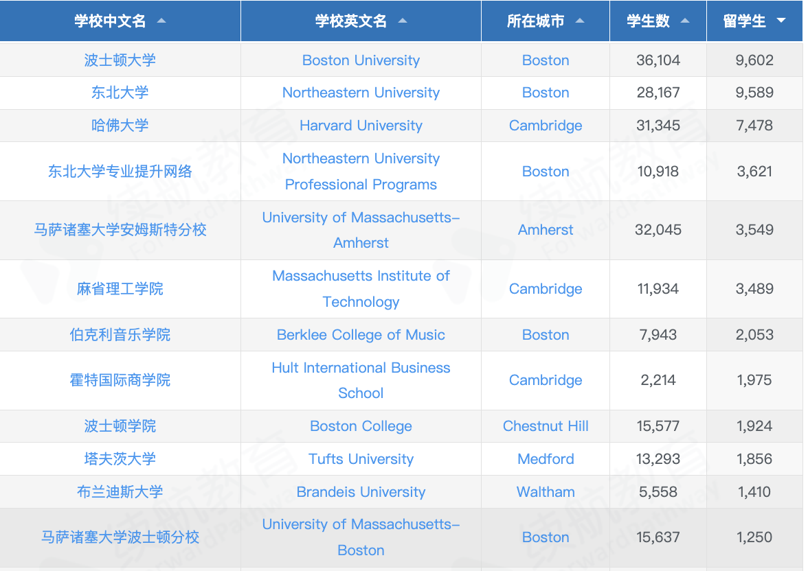 U.S. News美国大学排名前十名的学校有两所都在马萨诸塞州,这两所学校分别为哈佛大学(Harvard University)和麻省理工学院(Massachusetts Institute of Technology)。该州还有几所知名的文理学院,例如威廉姆斯学院(Williams College)、安默斯特学院(Amherst College)、卫斯理学院(Wellesley College)、史密斯学院(Smith College)。如果你想学音乐,马萨诸塞州的伯克利音乐学院也是一个不错的选择。总之,马萨诸塞州高校林立,教育氛围十分浓厚。