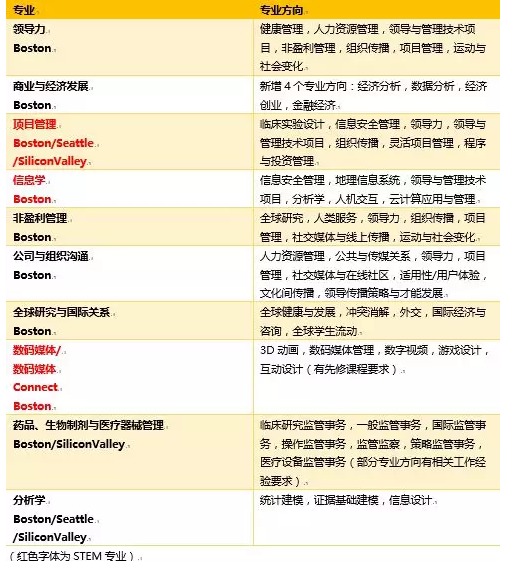 现在东北大学面对国际学生开放的难度较低的职业学位课程集中在CPS学院 ,目前的十个专业每个专业都是唯一的,所学课程的设置都是根据就业市场的需求量身定做,适合不同行业,不同职位的硕士专业需求: