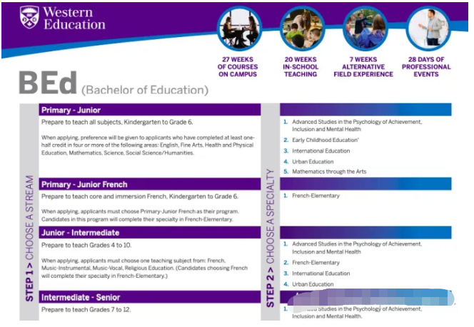 西安大略教育学院在提供的项目也很丰富~ Bachelor of Education 可以根据以后教学的学龄来选方向 :