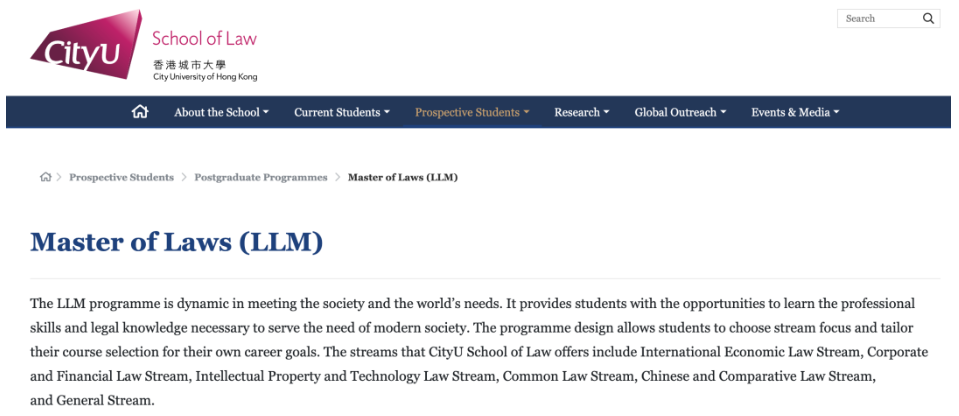 香港城市大学法学院建立于1987年,学术历史相比港中文要长得多,也同样接受英语六级申请,目前排名世界第31。