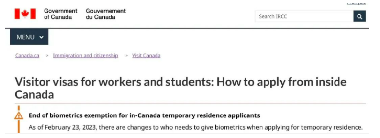 加拿大移民局于2023年2月23日宣布,恢复境内申请临时居留的申请人采集生物指纹的要求,即日起生效!