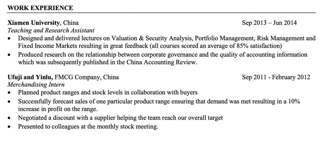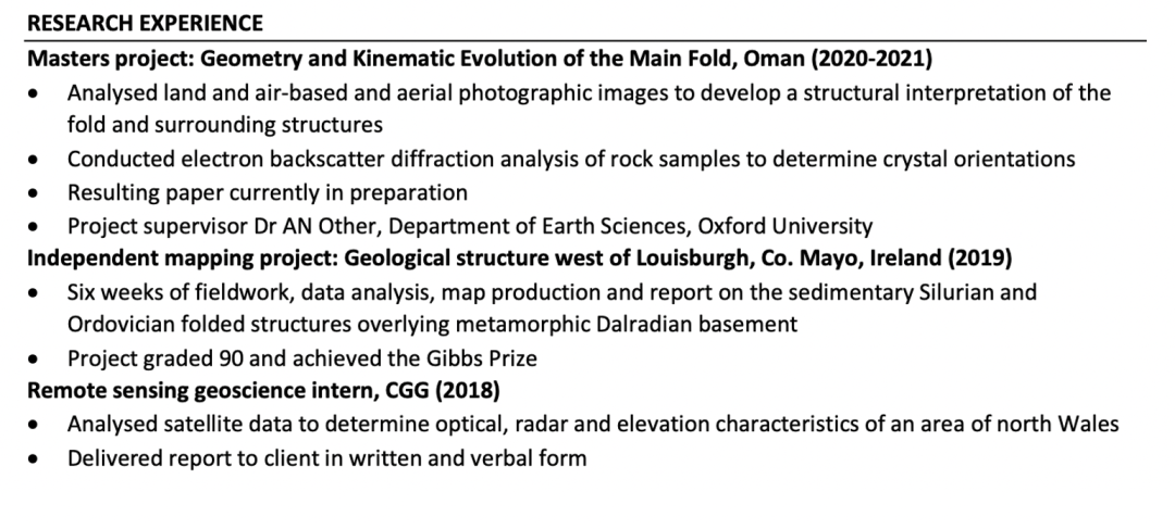 如果你做过相关科研项目;担任过Research Assistant,Research Intern等等职位;都不要忘记在简历中呈现出来哦