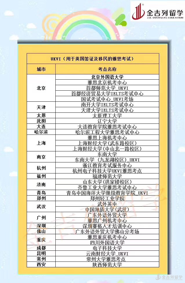 2 、考点不同:目前中国大陆地区可以提供 IELTS for UKVI 考试的有 12 处考点,香港有 1 处,总计 13 处考点,但各地陆续会有新增考点。官方公布的首批考点如下图: