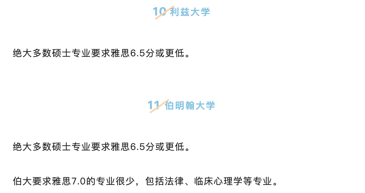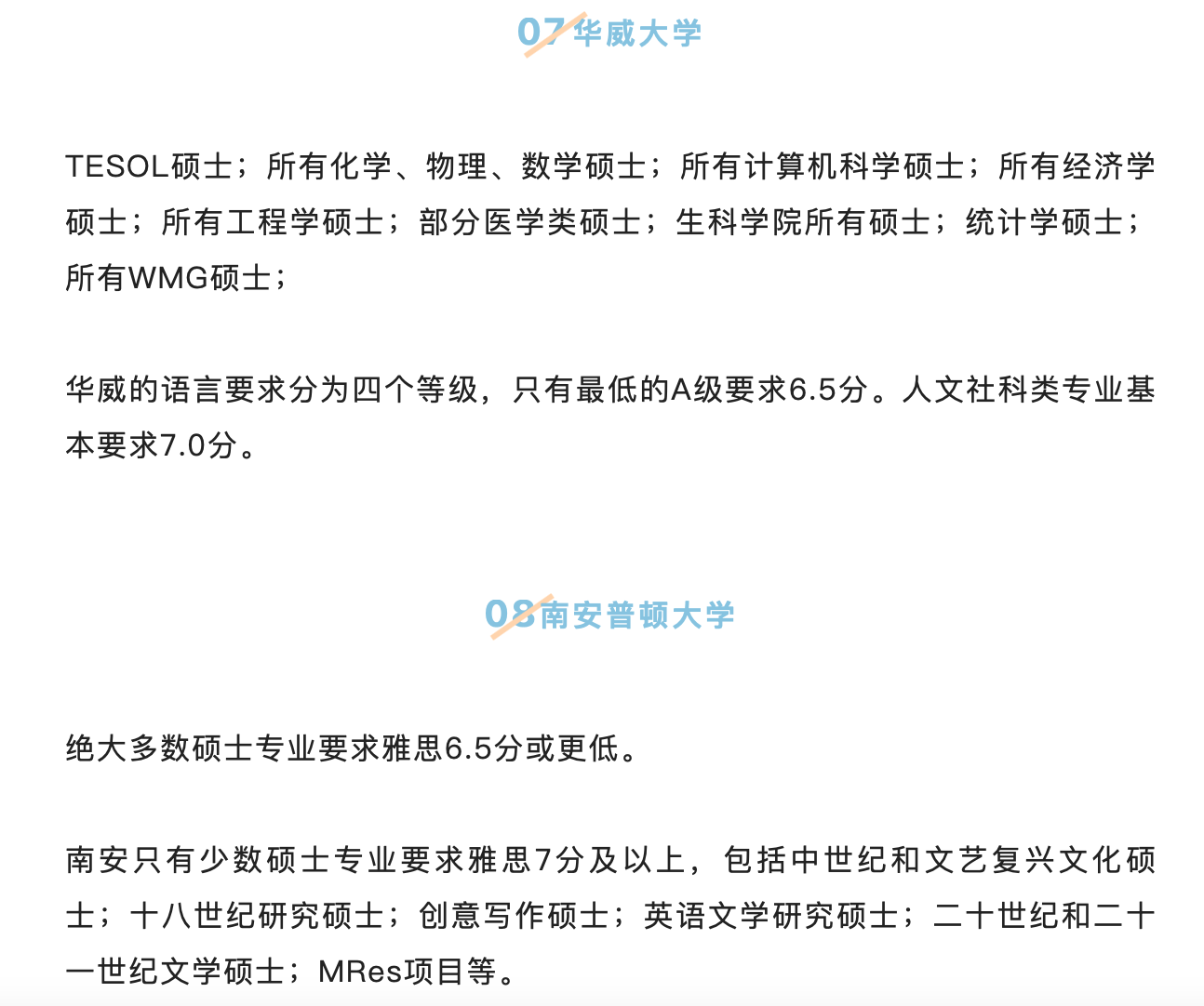 英国大学硕士录取要求逐年提高,除了均分要求及院校背景提高,今年还有很多学校的雅思也提高了不少?目前QS前100的英国大学里,还保留6.5雅思要求的学校已经 不多了,今天我们就来给大家盘点些?
