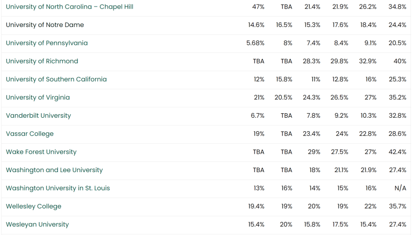 而随着申请人数的逐渐增加,各个大学的录取率却在逐年下降。