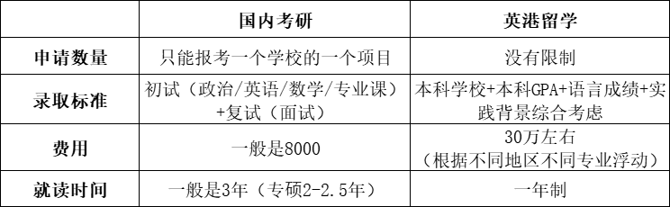 英国和中国香港的研究生大都是一年制(其实满打满算上课的时间只有9个月,9月份开学,次年5/6月份就能回来),上课主要还是以班级授课的方式进行,大都是学分修够,成绩达到就能直接毕业回来找工作。