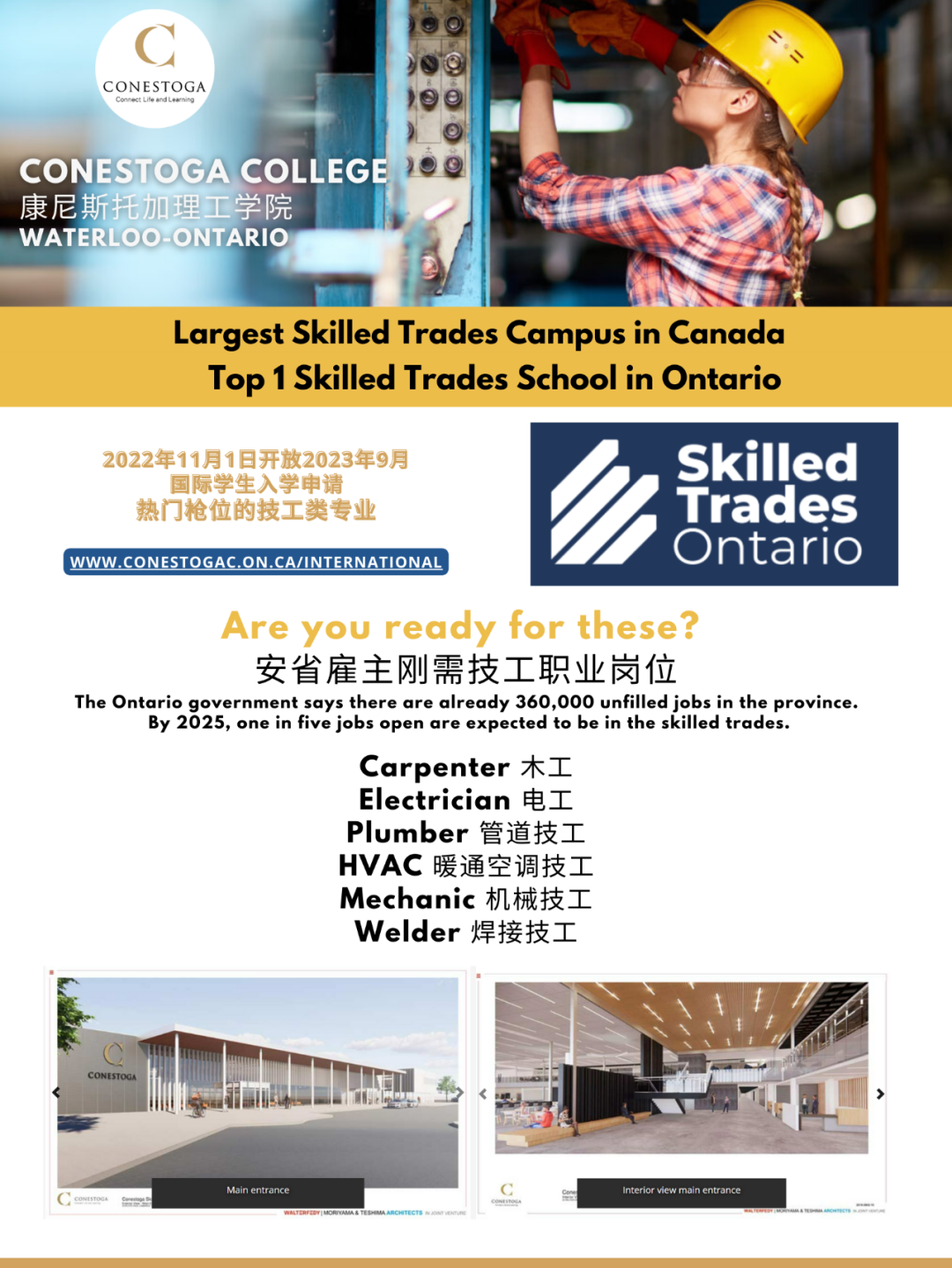 不论是你以后想来加拿大做一名建筑设计师、土木工程师、施工项目经理,还是想从事能一技在身,俗称加拿大“金饭碗“的Skilled Trades技工:如木匠、水管工、暖工,电工,屋面工、砖石石匠等技工岗位,你都能在加拿大的公立学院找到适合你的专业方向。