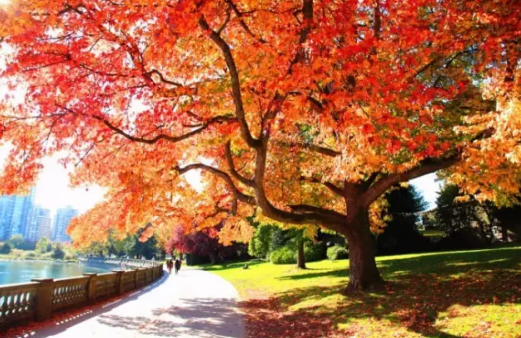 加拿大的秋叶让全球小伙伴无不心驰神往,加拿大街道上、公园里、森林山间红叶浓墨重彩,成为一道道壮观的风景。加拿大境内多枫树,每到秋天,满山遍野的枫叶或呈橘黄,或显嫣红,宛如一堆堆燃烧的篝火。