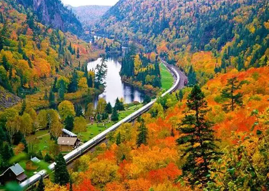 乘赏枫火车游览位于苏必利湖畔东岸的亚加华峡谷会是一个极佳的选择。当游客乘坐世界闻名的赏枫观景火车进入亚加华大峡谷时,便进入了世界上规模最大、景色最壮观的枫林区。